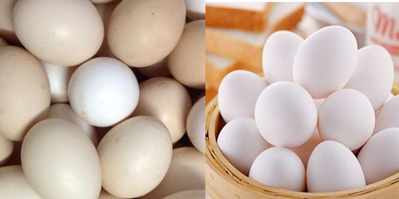 - Trứng vịt thường có màu trắng xanh hoặc trắng ngà, nhưng đôi khi cũng trắng bóc rất giống trứng gà.